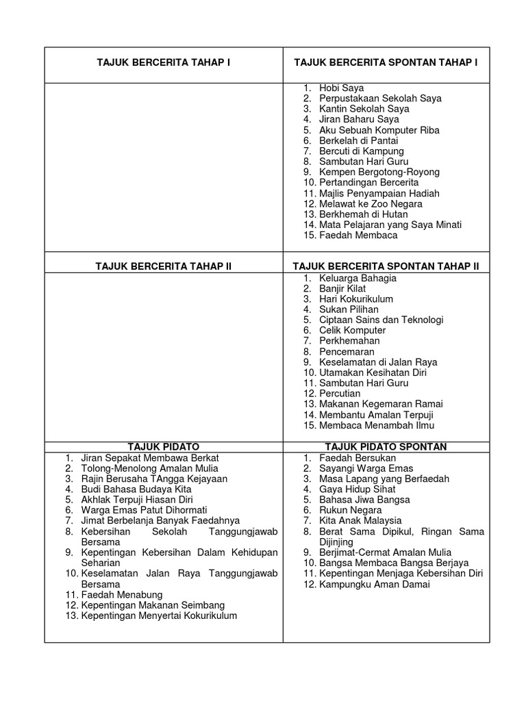 Tajuk Spontan Bercerita Tajuk Pidato Tajuk Spontan Pidato